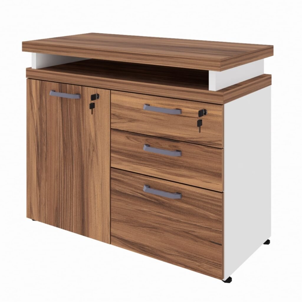Descrição Técnica – Balcão Credenza com 3 Gavetas e 1 Porta (Nogal Sevilha com Branco) – 34422