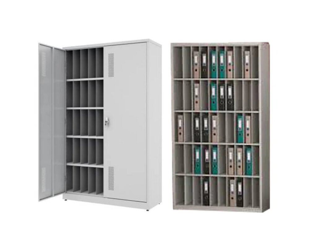 Este modelo de armário em aço apresenta 50 escaninhos para pastas AZ, portas para maior segurança das pastas e excelente custo-benefício sendo este armário em aço fabricado na chapa 24 (0,60mm)