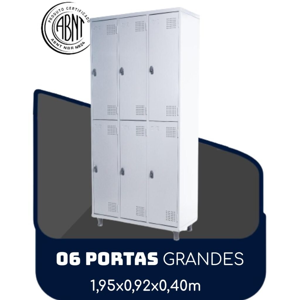 Armário Roupeiro de Aço c/ 06 Portas GRANDES – 1,95×0,92×0,40m – SA – CZ/CZ – 14009